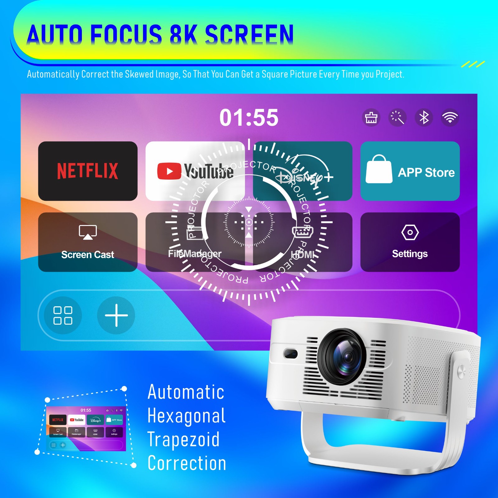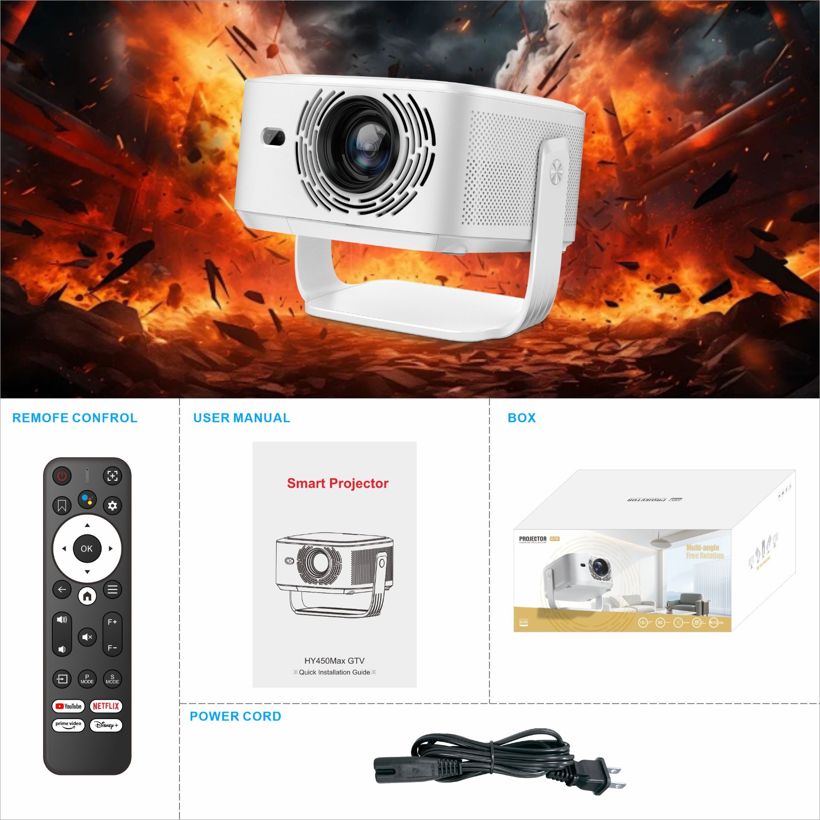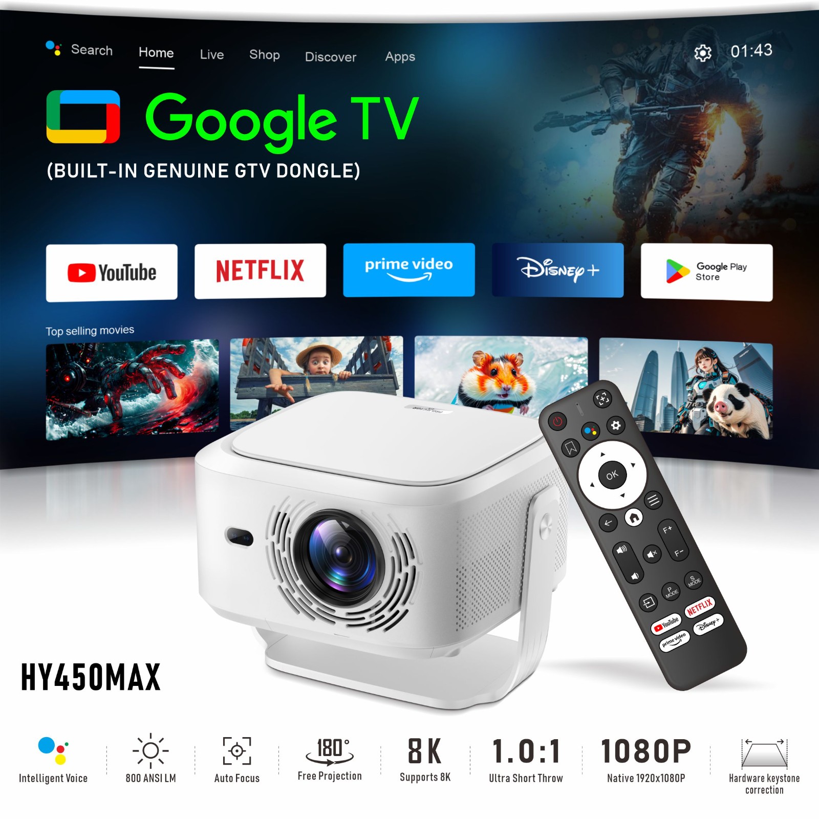 8K HY450max Android 14 Projector 1080P 800ansi 2G RAM 16GB Storage